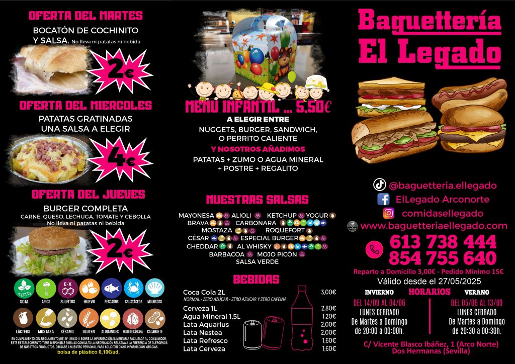 Nuestra baguettería es un negocio familiar y damos un toque especial a todos nuestros productos para así marcar la diferencia con todos. Nuestras salsas y postres caseros tienen un sabor propio, el cual no deja de recordar a la cocina tradicional andaluza. Innovamos sabores y texturas para que nuestros clientes sepan distinguirnos del resto. Contamos con servicio de Reparto a Domicilio, OFERTAS diarias de nuestros productos y una amplia variedad de Tartas realizadas en el día, que hacen las delicias de pequeños y mayores.